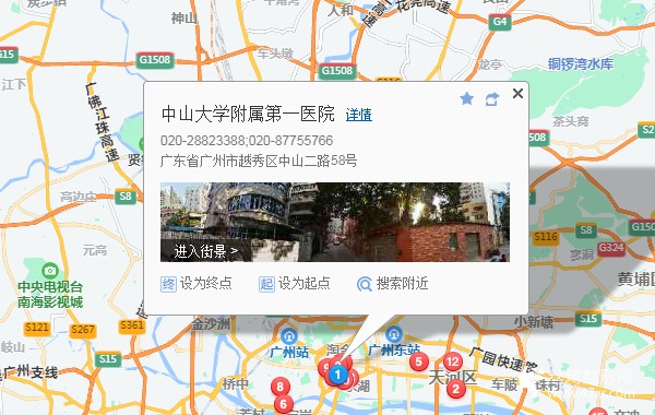 广州南站110米向东步行 到 广州南站11站乘 地铁2号线 (嘉禾望岗方向) 到 广场4站乘 地铁6号线 (香雪方向) 到 东山口3口 出站540米向西北步行 到 中山大学附属第一医院