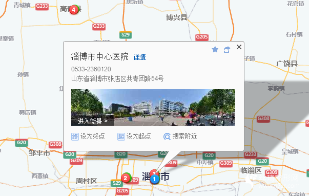 淄博客运中心370米向西步行 到 中国陶瓷科技城16站乘 127路 (潘南路东四路口方向) 到 市中心医院30米向西步行 到 淄博市中心医院