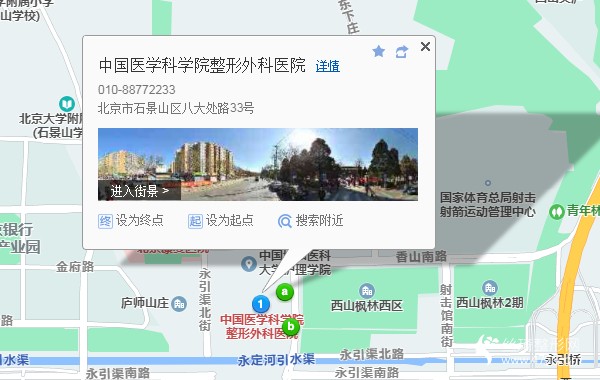 中国医学科学院整形外科医院(八大处整形医院)位于北京市石景山区八大处路33号。