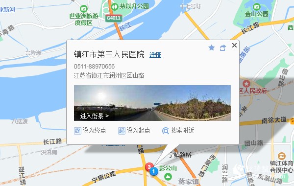 镇江站390米向东步行 到 万达广场2站乘 622路 (文景广场方向) 或 211路到 青年广场东30米向北步行 到 镇江市第三人民医院,