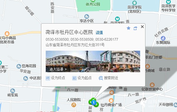 菏泽站360米向西步行 到 火车站18站乘 14路 (义乌小商品市场方向) 到 军分区480米向西南步行 到 菏泽市牡丹区中心医院