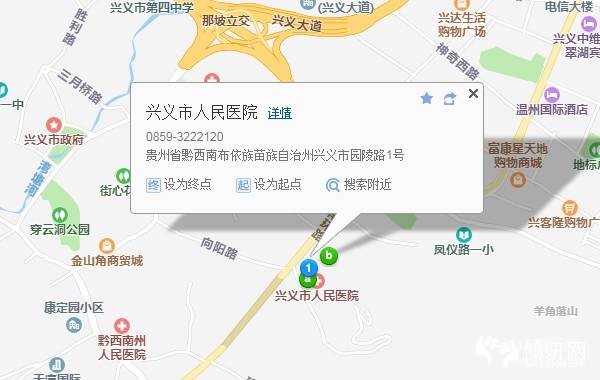 兴义站560米向东南步行 到 石桥湾16站乘 城际快速公交81路 (西南骨科医院方向) 到 金州体育城4站乘 定制公交2号线 (市医院住院部方向) 或 兴义33路 33路 到 市医院住院部120米向西南步行 到 兴义市人民医院