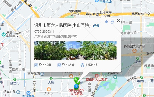 深圳站1公里向东北步行 到 罗湖医院23站乘 369路 (南头青青世界方向) 到 市六医院东210米向北步行 到 深圳南山区人民医院整形美容科