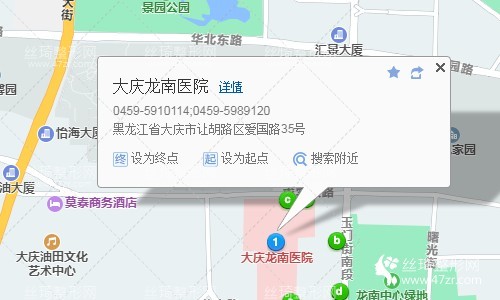 大庆西站1.9公里向东南步行 到 龙北站10站乘 38路 (乘风站方向) 到 检察院70米向西南步行 到 大庆龙南医院