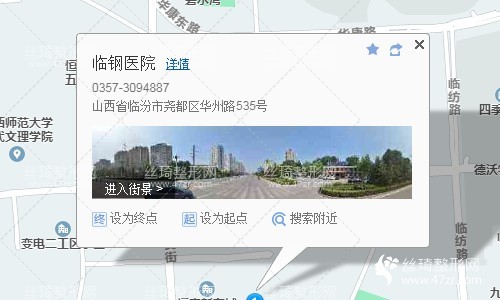 临汾西站190米向南步行 到 高铁站15站乘 7路 (东王公交站方向) 到 尧贤街西站880米向东南步行 到 临钢医院