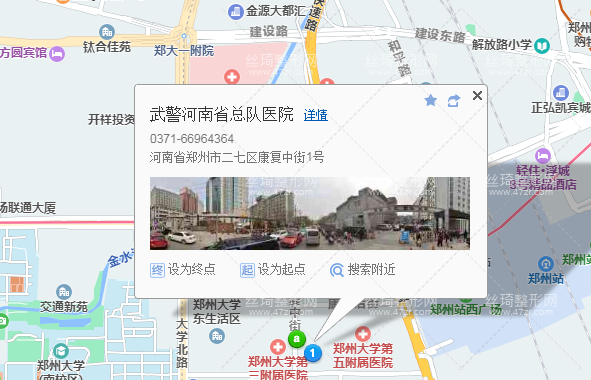 郑州东站1.5公里向南步行 到 郑州东站22站乘 Y5路 (火车站北港湾方向) 到 火车站1.9公里向西南步行 到 武警河南省总队医院