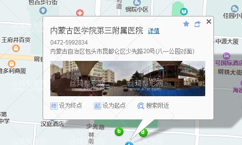 包头站110米向北步行 到 包头站(阿尔丁大街)11站乘 1路 (昆区长途站方向) 或 8路 到 公交一公司500米向西步行 到 内蒙古医学院第三附属医院
