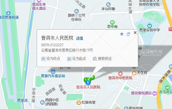 普洱站3.3公里向东步行 到 思江路口3站乘 2路 (麻鸡丫口方向) 到 绿岛公园380米向北步行 到 普洱市人民医院