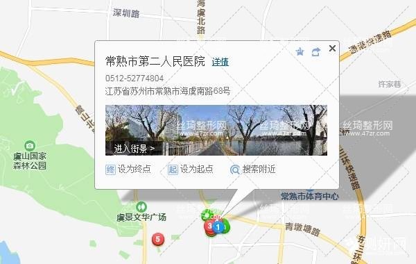 常熟站2.5公里向西北步行 到 方浜工业园13站乘 常熟212路 (琴湖公交换乘站方向) 到 第二人民医院80米向东南步行 到 常熟市第二人民医院