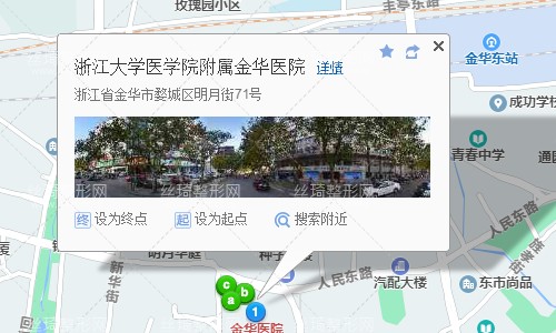 金华站360米向西步行 到 金华火车站5站乘 527路支线 (塘雅枢纽站方向) 或527路 到 中心医院90米向东步行 到 金华市中心医院