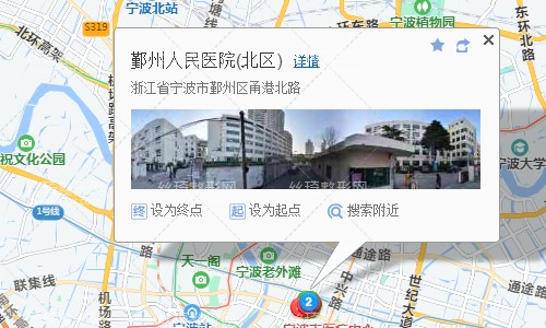 宁波汽车中心站170米向东北步行 到 客运中心 B口 进站4站乘 地铁2号线 (清水浦方向) 到 城隍庙 A口 出站280米向东步行 到 第一医院5站乘 357路 (公交邱隘南站方向) 或302路 354路 506路 到 鄞州人民医院190米向东步行 到 宁波市鄞州人民医院