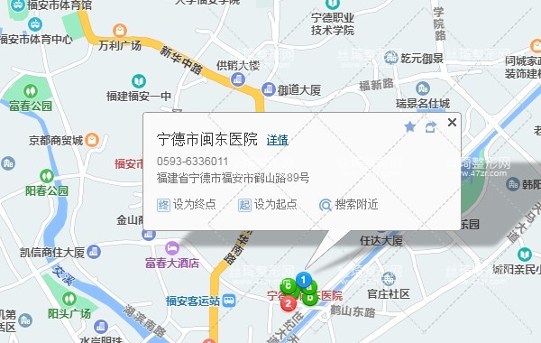 福安客运站30米向东南步行 到 汽车南站1站乘 福安7路 (宁德职业技术学院(新校门)方向) 到 闽东医院320米向东北步行 到 宁德市闽东医院