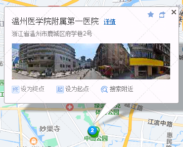 温州站510米向东步行 到 火车温州站公交枢纽9站乘 B109路 (火车南站公交枢纽方向) 或 5路 到 中山公园400米向北步行 到 温州医科大学附属第一医院。