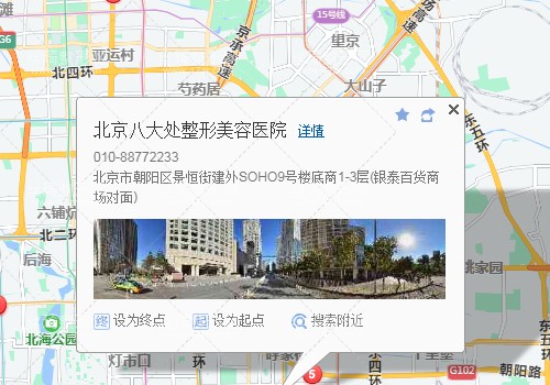六里桥客运主枢纽300米向西步行 到 六里桥 C口(东北口)进站2站乘 地铁9号线 (图书馆方向) 到 北京西站11站乘 地铁7号线 (花庄方向) 到 双井200米向东步行 到 双井1站乘 地铁10号线 (国贸方向) 到 国贸D口(西南口) 出站770米向西南步行 到 北京八大处整形美容医院,