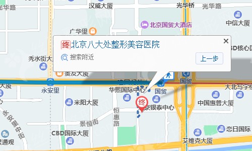 北京站110米向西步行 到 北京站 C东南出口 进站1站乘 地铁2号线外环 (建国门方向) 到 建国门90米向东步行 到 建国门2站乘 地铁1号线 (四惠东方向) 到 国贸D口(西南口) 出站480米向西南步行 到 北京八大处整形美容医院。