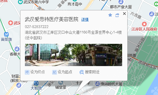 武汉站80米向西步行 到 武汉火车站 东出口 进站7站乘 轨道交通4号线 (柏林方向) 到 岳家嘴 J口 出站380米向东步行 到 徐东大街省电大厦10站乘 402路 (武昌火车站综合体方向) 到 中山大道黄兴路180米向东步行 到 武汉爱思特医疗美容医院,