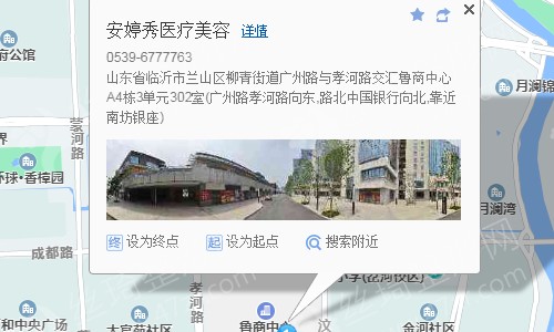 临沂安婷秀整形美容医院位于临沂市广州路与孝河路交汇鲁商中心A4座,总共是3层3000个平方,于2016年建立。
