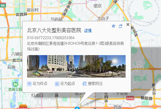 北京站-进站口590米向北步行 到 北京站前街2站乘 804路 (杨洼方向) 到 大北窑西370米向西南步行 到 北京八大处整形美容医院