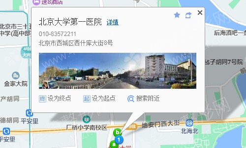 北京南站7站乘 地铁4号线大兴线 (安河桥北方向) 到 平安里 C口(东南口) 出站870米向东步行 到 北京大学第一医院