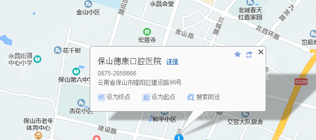 保山客运站240米向西北步行 到 公交中站8站乘 8路 (公交北站方向) 到 消防支队640米向南步行 到 保山德康口腔医院
