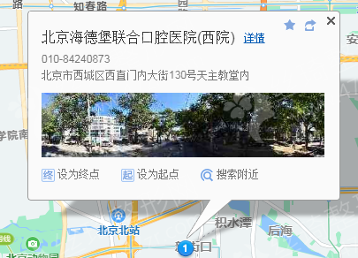 北京海德堡联合口腔医院位于北京市西城区较繁华的地带医院,经过多年发展后,现在已经成为了一所集科研,教学,临床,新科技开发与应有为一体的新型口腔机构,医院在2016年时所建立成功,医院内现在设有口腔种植科、修复科、医学检验科、医学影像科等多个临床与专业医技科室,引进先进且齐全的口腔医疗设备,近年来已成功为较多爱美人士完成了口腔手术,由于手术后的果大家都十分的满意,因此得到了大家一致的好评和认可。