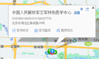 北京站110米向西步行 到 北京站 C东南出口 进站1站乘 地铁2号线外环 (建国门方向) 到 建国门90米向东步行 到 建国门10站乘 地铁1号线 (古城方向) 到 公主坟1站乘 地铁10号线内环 (西钓鱼台方向) 到 西钓鱼台 A口(西北口) 出站330米向东步行 到 中国人民解放军空军特色医学中心,