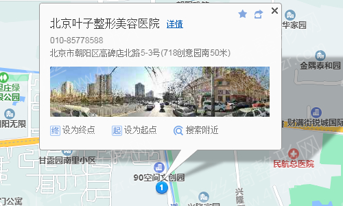 北京东站1.6公里向东步行 到 四惠枢纽站3站乘 553路 (单店方向) 或 468路 517路到 康家沟100米向北步行 到 北京叶子整形美容医院,