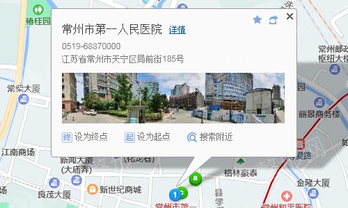常州站360米向西南步行 到 新丰桥南2站乘 29路 (县直街方向) 到 第一医院90米向西步行 到 常州市第一人民医院,