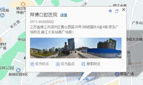 镇江南站320米向东北步行 到 京沪高铁镇江南站10站乘 86路 (火车站北广场方向) 到 火车站(南)150米向西北步行 到 拜博口腔医院