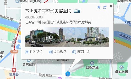 常州北站110米向西北步行 到 常州北站 4口 进站8站乘 地铁1号线 (南夏墅方向) 到 翠竹2口 出站280米向东步行 到 永宁花园6站乘 31路 (广电路花园街方向) 到 椿桂园80米向西步行 到 常州美贝尔医疗美容医院