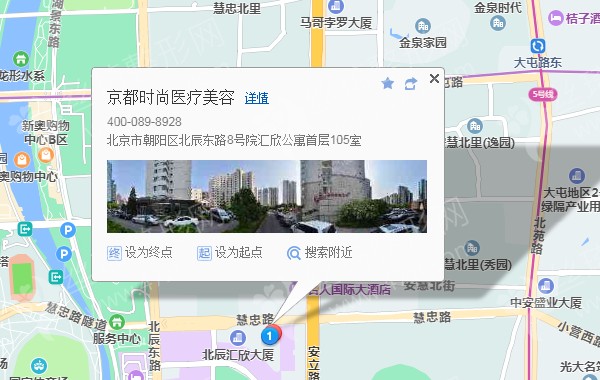 北京南站3站乘 地铁14号线东段 (善各庄方向) 到 蒲黄榆140米向东步行 到 蒲黄榆13站乘 地铁5号线 (天通苑北方向) 到 惠新西街北口 A口(西北口) 出站350米向东步行 到 安慧桥东1站乘 408路 (慧忠里方向) 或 419路 379路 406路(原特16路) 到 安慧桥北470米向西北步行 到 京都时尚医疗美容