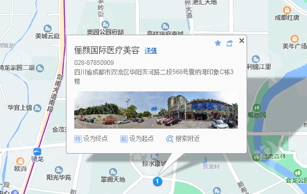 成都汽车总站120米向东步行 到 五桂桥公交站2站乘 66路 (迎晖公交站方向) 或 122路440路 91路 4路 23路 94路 200路 到 迎晖路中420米向东步行 到 迎晖路 C口 进站8站乘 地铁7号线内环 (成都东客站方向) 到 神仙树220米向东步行 到 神仙树8站乘 地铁5号线 (回龙方向) 到 骑龙 D口 出站1.3公里向东步行 到 俪颜国际医疗美容