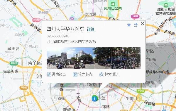 成都双流国际机场120米向东南步行 到 双流机场1航站楼A口 进站4站乘 地铁10号线 (太平园方向) 到 太平园3站乘 地铁3号线 (成都医学院方向) 到 衣冠庙 C口 出站130米向东步行 到 地铁衣冠庙站4站乘 6路 (仙韵二路方向) 到 电信路华西医院220米向西南步行 到 四川大学华西医院