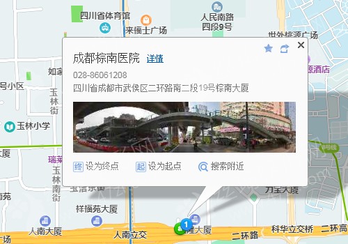 成都汽车总站270米向东步行 到 五桂桥公交站8站乘 K4路 (大源村方向) 到 人南立交东130米向东北步行 到 成都棕南医院