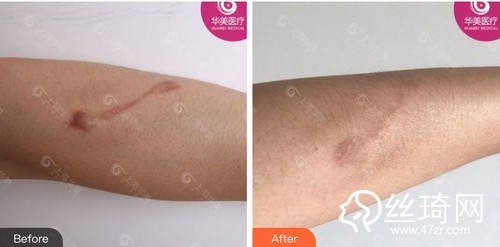 这位男士是之前做手术时留下的疤痕,疤痕有明X突出,通过高端的仪器经过专业的操作之后,会越来越浅,逐渐消失,这位女士经过了3次调节,现在的痕迹得到了很大的改良。
