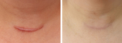 患者脖子下面增生性疤痕,是陈旧性的刀疤,使用SRT-100立体微创修复系统仪器,在疤痕疙瘩防复发调节果好,是国际公认调节疤痕的金标准。这样祛除的疤痕,会很自然,对患者没有影响。