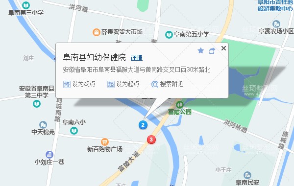 阜南站70米向东南步行 到 火车站9站乘 阜南2路 (姬庄佳苑方向) 到 百货大楼210米向东步行 到 新华书店4站乘 阜南1路 (南湖公园方向) 或 阜南5路 城际公交1号线 到 油厂1公里向东步行 到 阜南县妇幼保健院。