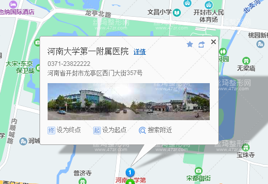 开封汽车站280米向西步行 到 火车站7站乘 31路 (宋城路站.公交六公司方向) 或 1路 到 新街口360米向西步行 到 河南大学第一附属医院