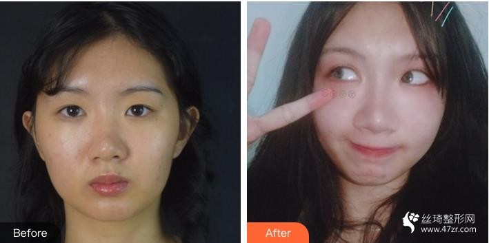 今天肿长是比较厉害呢,身边闺蜜都在感叹我的勇气,怎么能一下子做二项动刀子的手术呢,我心想既然做了那不如一次做完,我想要更加协调的美,动了眼睛,我的鼻子肯定也要相应的调整,这样术后的改变才是我想要的,其在能看出来,和术前比,我的双眼皮线条抬高了不少,但毕竟还是恢复期,还是需要再等等看结果的哟,较后要注意饮食和作息!