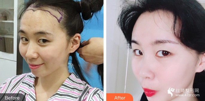 做完感觉好兴奋,第一天晚上没啥大感觉,就是后半夜小区里不知道谁家的电动车一直响警报,搞的我后半夜从三点半就没睡了。早上起来,照照镜子,发现额头略微有那么一点点肿,肿的高度刚刚好,因为原来额头比较扁平,这么一瞅还挺好看哈哈哈哈,是不是可以考虑去丰个额头了前面种植区略有紧绷感,不能做鬼脸或者比较大的表情,会牵扯到种植区会有扯痛感,不过一般情况下没啥感觉。