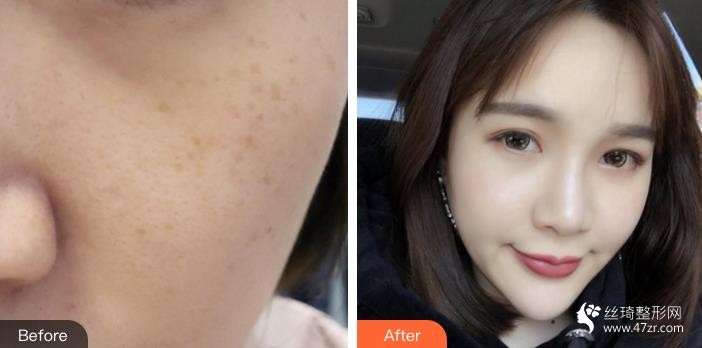 现在离做完激光美肤已经两个多月了,之前几个比较深的斑明X淡很多,比较浅的斑没有了,平时随便一个淡妆几乎斑点都全挡了,而且素颜也是美美哒!当然这是做了一次的果,我已经很满意了,打算过段时间再去做一次看看斑点能不能再淡一点,细腻一下肤质!